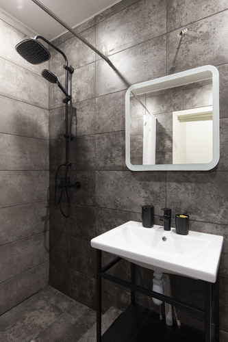 В ванной комнате: душ, тапочки, фен, полотенца, средства личной гигиены.